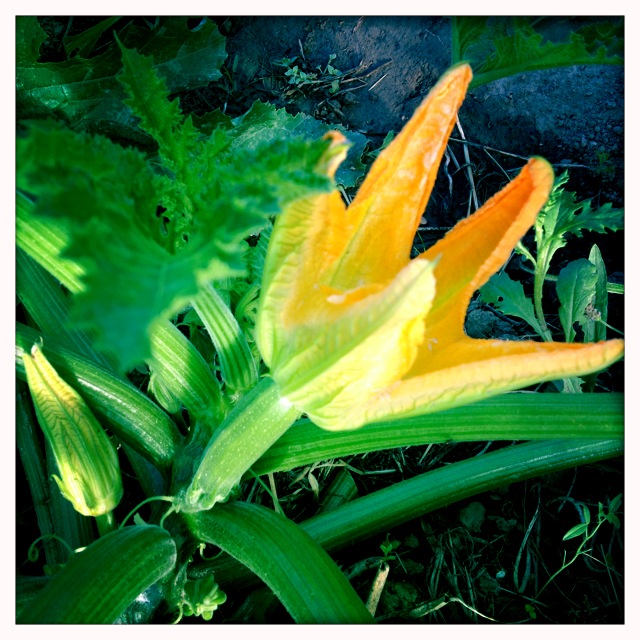 The female flowers tend to be much larger and grow on the end of each emergent courgette. This will look much shorter than the stem the male flower grows on. If the female flower isn’t pollinated the baby courgette may grow for a bit but will eventually either dry out or rot off. If there is a lack of insect activity to pollinate the plants the other option is to hand pollinate. (Just sounds wrong to me!). This is done by removing the corolla from the male flower and brushing it against the stigmas of the female flower (it’s sounding worse!).