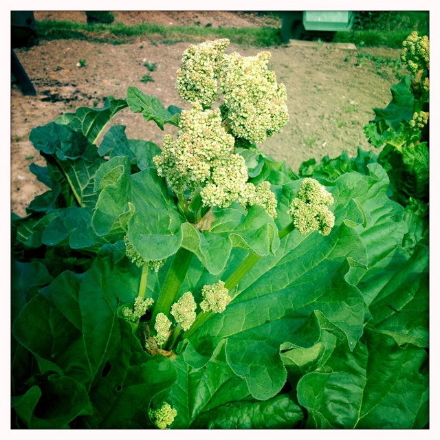 Looking around the allotments, there are plenty of flower stems on the rhubarb plants this year. It typically happens on older plants; plants that are three years or older. These should be removed straight away so all the plants energy is directed into stalk and leaf production rather than setting seed.