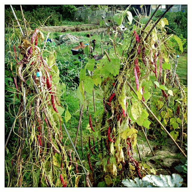 The past week or so has been spent getting the plots ready for the winter. There’s been a lot of weeding, strimming, clearing and compost turning. It’s all a bit messy but it’s been rather rewarding. I’ve also been gathering seeds, runner beans, french beans, garlic chives at the allotment and cinnamon basil at home, thrilled about the basil seeds.